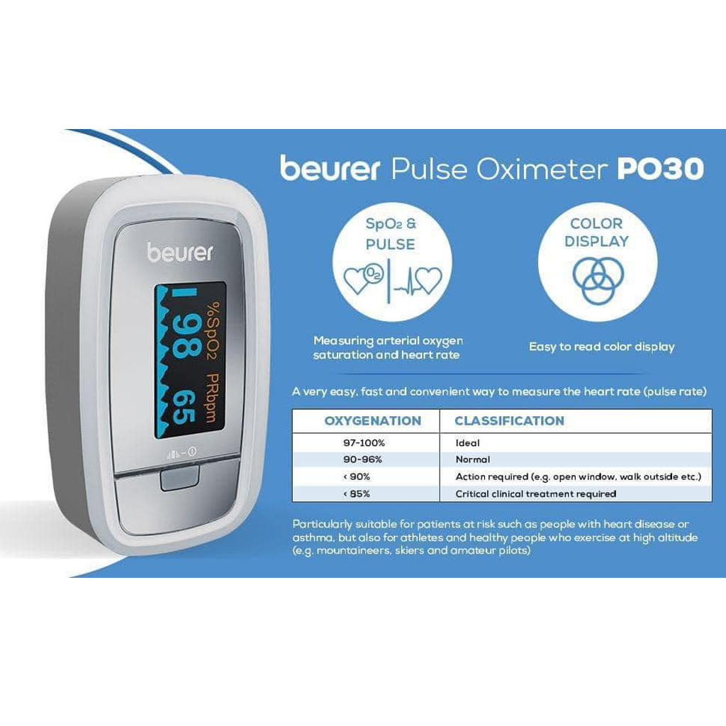 ✨[Thương Hiệu Đức] Máy Đo Nồng Độ Oxy Trong Máu (Spo2) Và Nhịp Tim Beurer PO30 | Màn Hình LCD , Chức Năng Dải Sóng Điện Tim Đồ