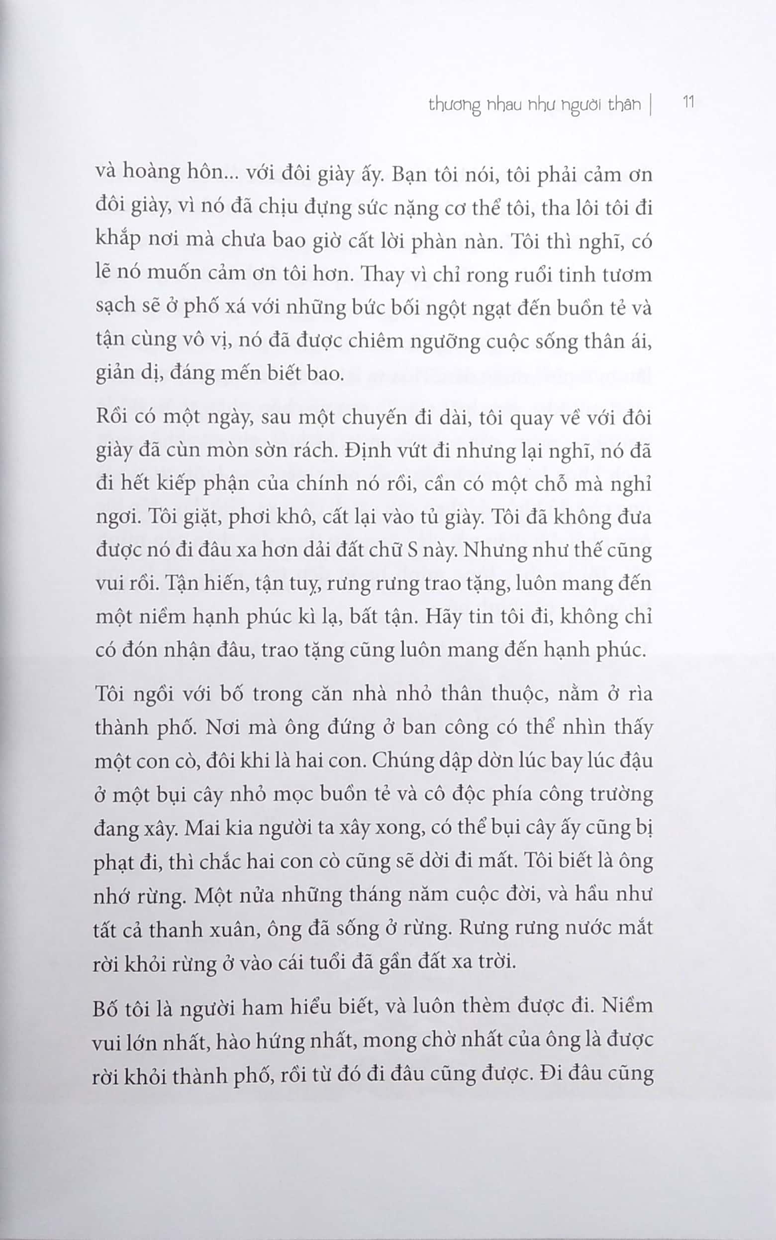 Mua tại TiktokKhi đọc xong, tôi đã nói với Thúy rằng, chính là khi đi đến tận cùng cái riêng, ta lại chạm vào cái chung của tất thảy mọi người. Tôi tin rằng những trang văn của Thúy sẽ chạm vào trái tim của tất cả những độc giả yêu mến cái đẹp, bởi những điều Thúy viết ra được bắt nguồn từ thẳm sâu một niềm yêu sống, một lòng biết ơn cuộc đời. Những trang văn không chỉ có hiềm vui rạng rỡ mà đôi khi có cả những vũng lầy, những bất trắc khốn khổ, những cay đắng gục ngã đớn đau. Thế nhưng sau hết thì con người vẫn đứng lên mà bước tiếp.