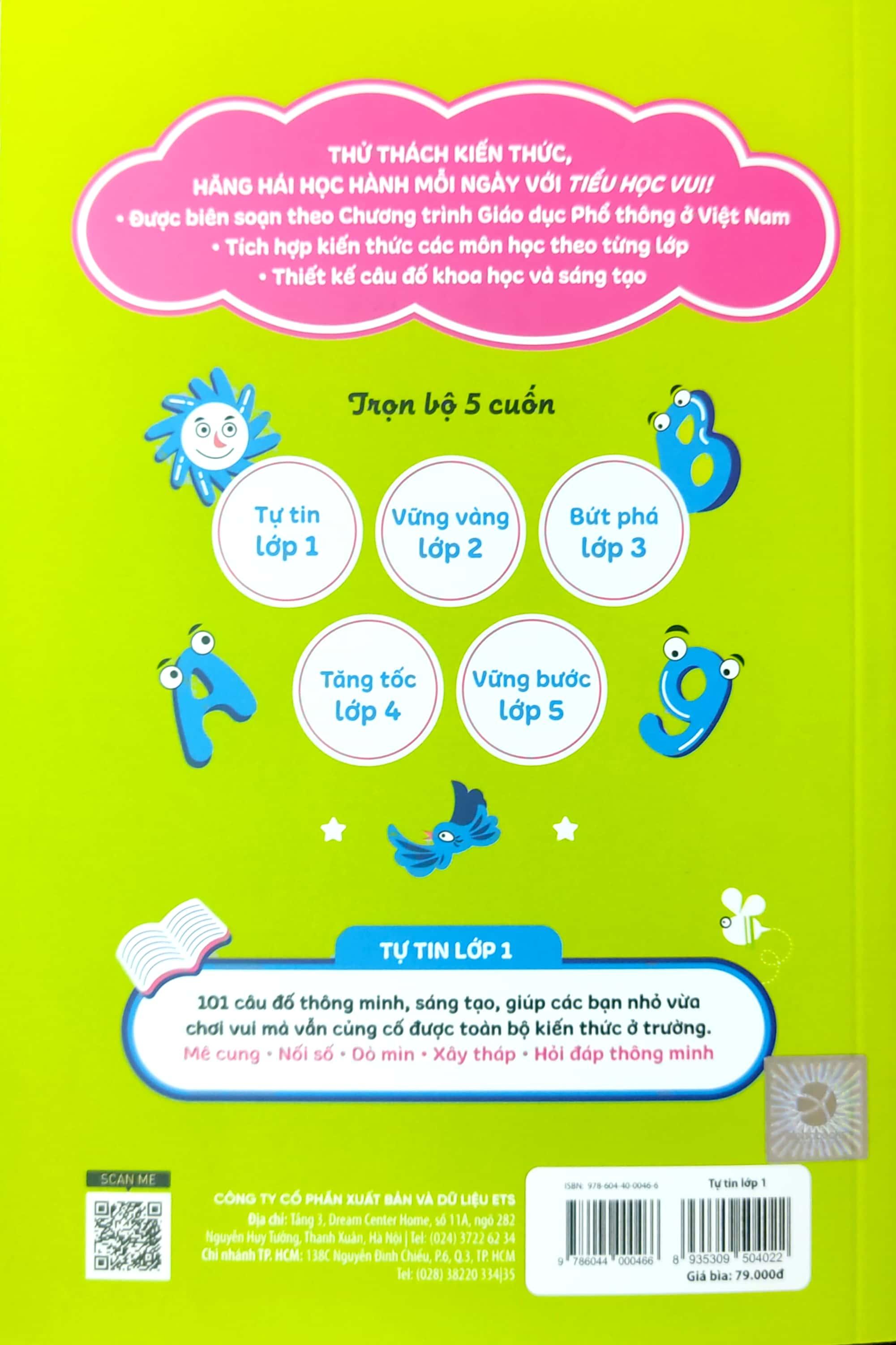 Mua tại TiktokTiểu Học Vui - Tự Tin Lớp 1 - 101 Câu Đố Rèn Trí Não Luyện Kỹ Năng Được biên soạn dựa theo Chương trình Giáo dục Phổ thông dành cho học sinh tiểu học, bộ sách Tiểu học vui gồm 5 cuốn tương ứng từ lớp 1 đến lớp 5: Tự tin lớp 1, Vững vàng lớp 2, Bứt phá lớp 3, Tăng tốc lớp 4, Vững bước lớp 5. Tiểu học vui – Tự tin lớp 1 bao gồm 101 câu hỏi trong mỗi cuốn sách tổng hợp kiến thức của các môn học lớp 1: