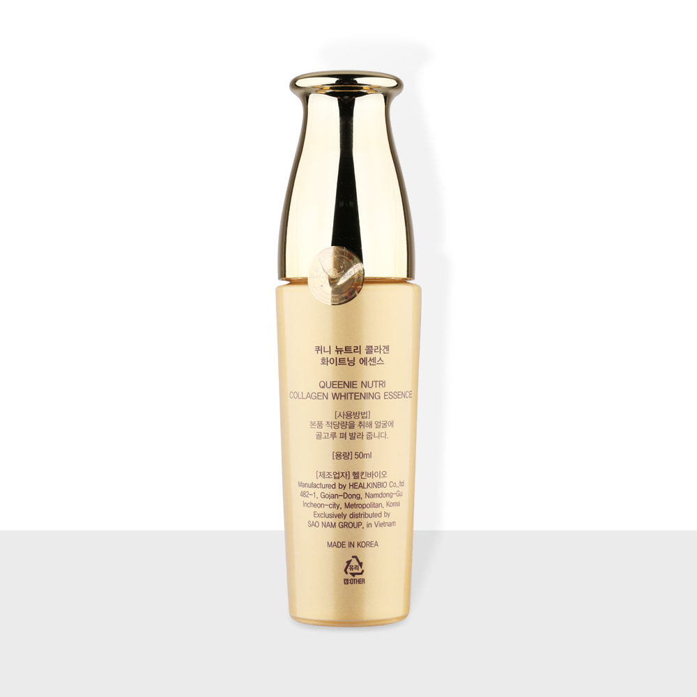 Tinh chất (serum) là bước chăm sóc da đặc biệt giúp cải thiện hiệu quả những hư tổn trên làn da của bạn. Queenie Nutri-Collagen Whitening Essence bổ sung Collagen từ tảo biển cung cấp độ ẩm cao, giúp các sợi Collagen được dẻo dai và săn chắc. Tinh dầu hoa hướng dương, vitamin C từ hoa quả nuôi dưỡng làn da trở nên trắng hồng. Tinh chất dưỡng trắng da Queenie chống lại các tác nhân gây hại từ môi trường, làm chậm lại quá trình lão hóa da, mang đến cho bạn một làn da khỏe đẹp, căng mịn, trắng hồng như bạn mong muốn. Tinh chất dịu nhẹ, dễ dàng thẩm thấu ngay vào da, không nhờn rít, an toàn cho cả da nhạy cảm.