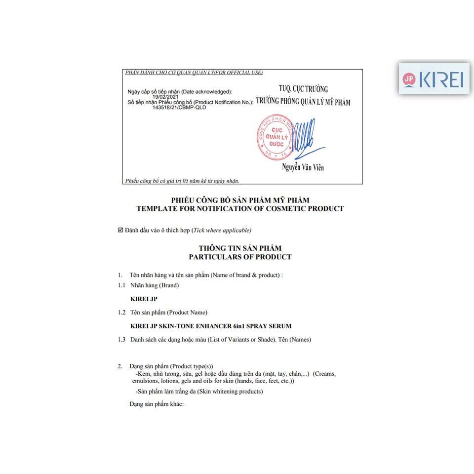 ✨Tinh Chất Dưỡng Trắng Dạng Xịt 6 trong 1 Kirei JP - Skin Tone Enhancer 6in1 Spray Serum 100ml