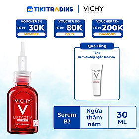 Mua tại TiktokVÌ SAO BẠN SẼ THÍCH? Serum Vichy Liftactiv B3 Dark Spots 30ml với sự kết hợp giữa 13% phức hợp thành phần hoạt tính cao: Niacinamide [B3], thành phần peel da và AHA cho làn da tươi sáng đều màu sau 8 tuần sử dụng. Đây chính là giải pháp giúp da bạn cải thiện và ngăn ngừa đốm nâu, thâm nám toàn diện. THÔNG TIN SẢN PHẨM Loại sản phẩm: Serum dưỡng sáng, hỗ trợ giảm mụn, cải thiện và ngăn ngừa đốm nâu thâm nám Loại da phù hợp: Mọi loại da, ngay cả làn da nhạy cảm Độ an toàn: