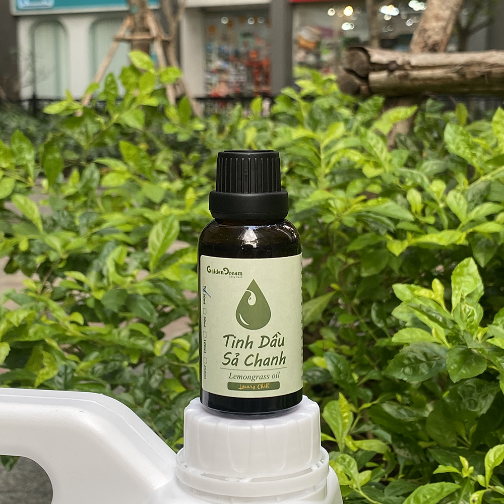 TINH DẦU SẢ CHANH GOLDEN DREAM - 100% THIÊN NHIÊN VIỆT NAM, TỰ HÀO NÔNG SẢN VIỆT Tinh dầu Golden Dream là sự kết hợp hoàn hảo giữa tinh tế nghệ thuật chiết xuất tự nhiên và vẻ đẹp của nông sản Việt Nam. Với nguồn nguyên liệu chất lượng cao từ lá sả chanh, sản phẩm được chiết xuất bằng phương pháp chưng cất hơi nước, đảm bảo 100% thiên nhiên và đậm chất miền nhiệt đới. Chúng tôi có 3700 hecta trồng sả và nhà máy công nghệ cao ở Tiền Giang, khác biệt so với các sản phẩm trên thị trường chuyên nhập khẩu từ Ấn Độ, Trung Quốc hiện nay. Thành phần: