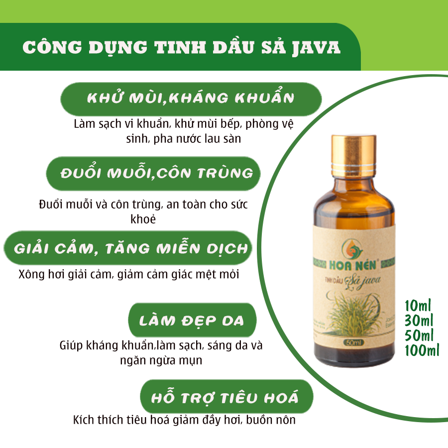 ✨Tinh dầu Sả Java nguyên chất Hoa Nén 3ml - 100ml - Đuổi muỗi, khử mùi, kháng khuẩn