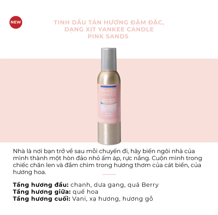 ✨Tinh dầu tán hương đậm đặc, dạng xịt Yankee Candle - Pink Sands (42.5g)