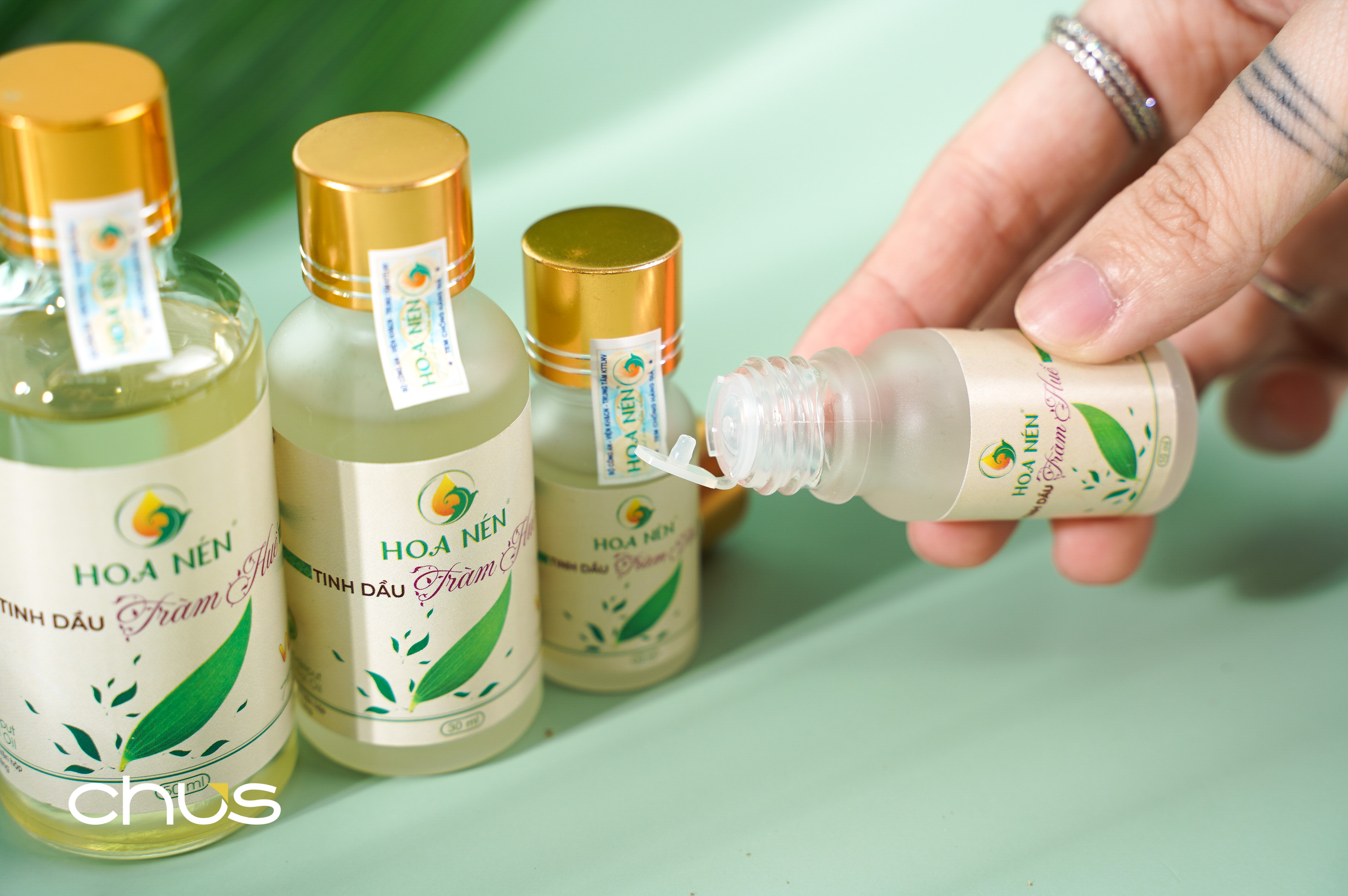 Sản phẩm Tinh dầu tràm của Công ty TNHH MTV Sản xuất Tinh dầu HOA NÉN, được chiết xuất từ 100% cây tràm gió thiên nhiên. Thành phần chính trong tinh dầu tràm là cineol