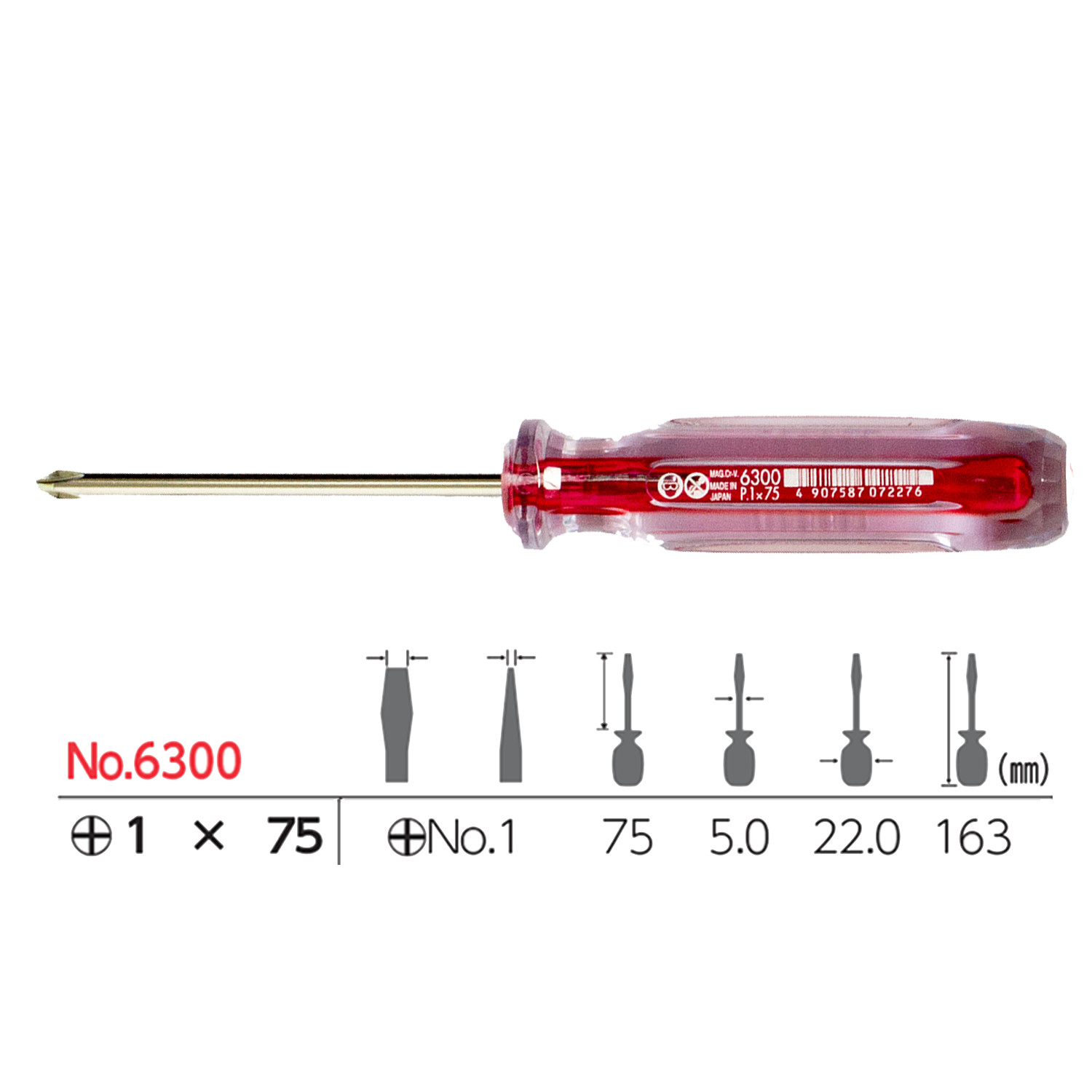 ✨Tô vít mũi (+) cán nhựa trong No.6300 Vessel sản xuất tại Nhật Bản