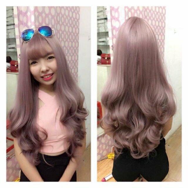 ✨Tóc giả cao cấp hồng khói dài- tặng lứoi chùm tóc- hình thật