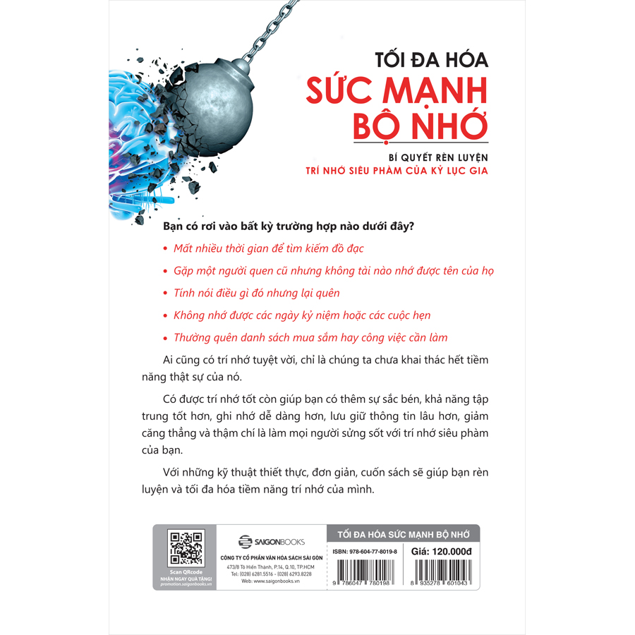 Sở hữu trí nhớ tốt là một kỹ năng, và để đạt được kỹ năng này thì đòi hỏi phải luyện tập. Khi đọc Tối đa hóa sức mạnh bộ nhớ, bạn sẽ được làm quen với nhiều bài tập đa dạng. Xin hãy tiếp tục thực hành những bài tập này bởi vì chỉ đọc sách không thôi thì không thể giúp bạn đạt đến tối đa tiềm năng của mình. Nghiêm túc tập luyện các bài tập trong lúc đọc sách là điều cần thiết để bạn nâng cấp trí nhớ của mình. Quan trọng nhất, bạn sẽ trải nghiệm một sự thay đổi rõ rệt trong thái độ của mình đối với việc học, ghi nhớ và xử lý thông tin.