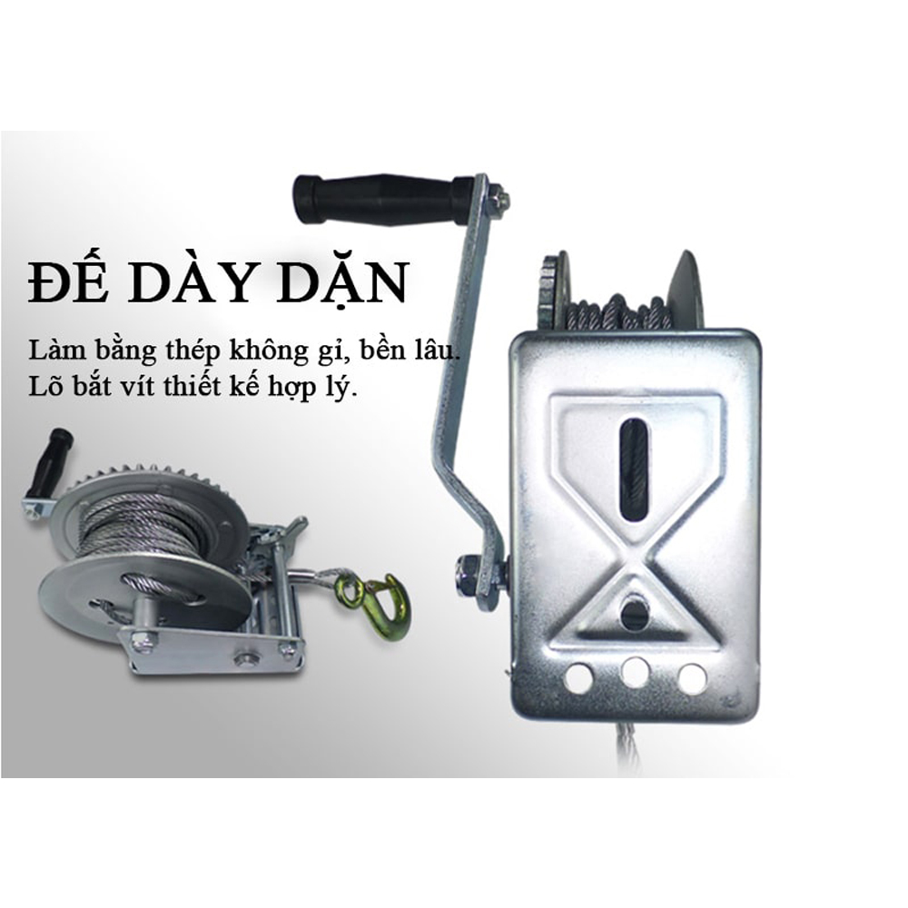 Tời quay tay 2000LBS nâng 907kg cáp dài 8 mét