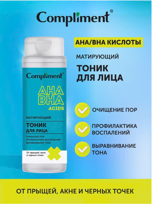 Xuất Xứ: Nga Thương hiệu: Compliment Dung tích: 200ml HSD: 36 tháng kể từ NSX Công thức phức hợp axit salicylic và trái cây ----- Axit salicylic giúp tẩy tế bào chết, đẩy nhanh quá
