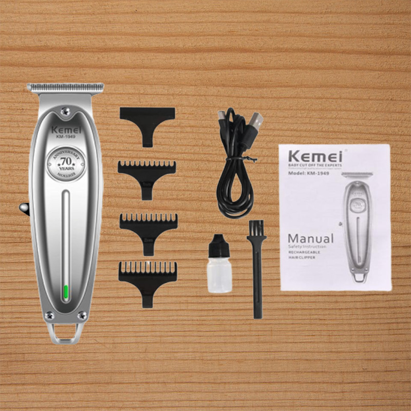 Mua tại TiktokTông đơ KEMEI KM-1949 cao cấp không dây toàn thân là hợp kim nhôm không gỉ chuyên dùng chấn viền, cạo viền, khắc tóc