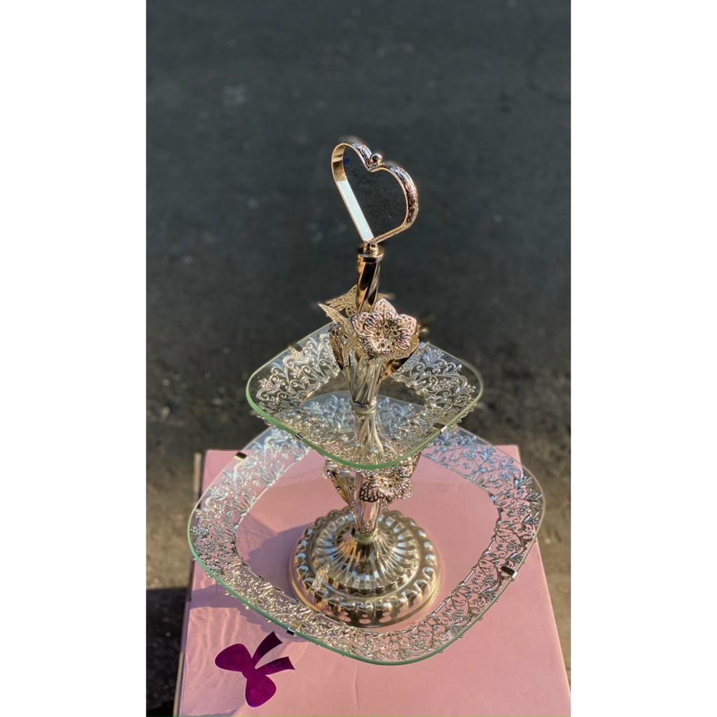✨Tổng hợp Đĩa Thủy Tinh Khảm Hoàng Gia Cao Cấp | KỆ THỦY TINH 2 - 3 TẦNG KHUNG HỢP KIM CAO CẤP TRẮNG VÀNG HÌNH THỰC TẾ