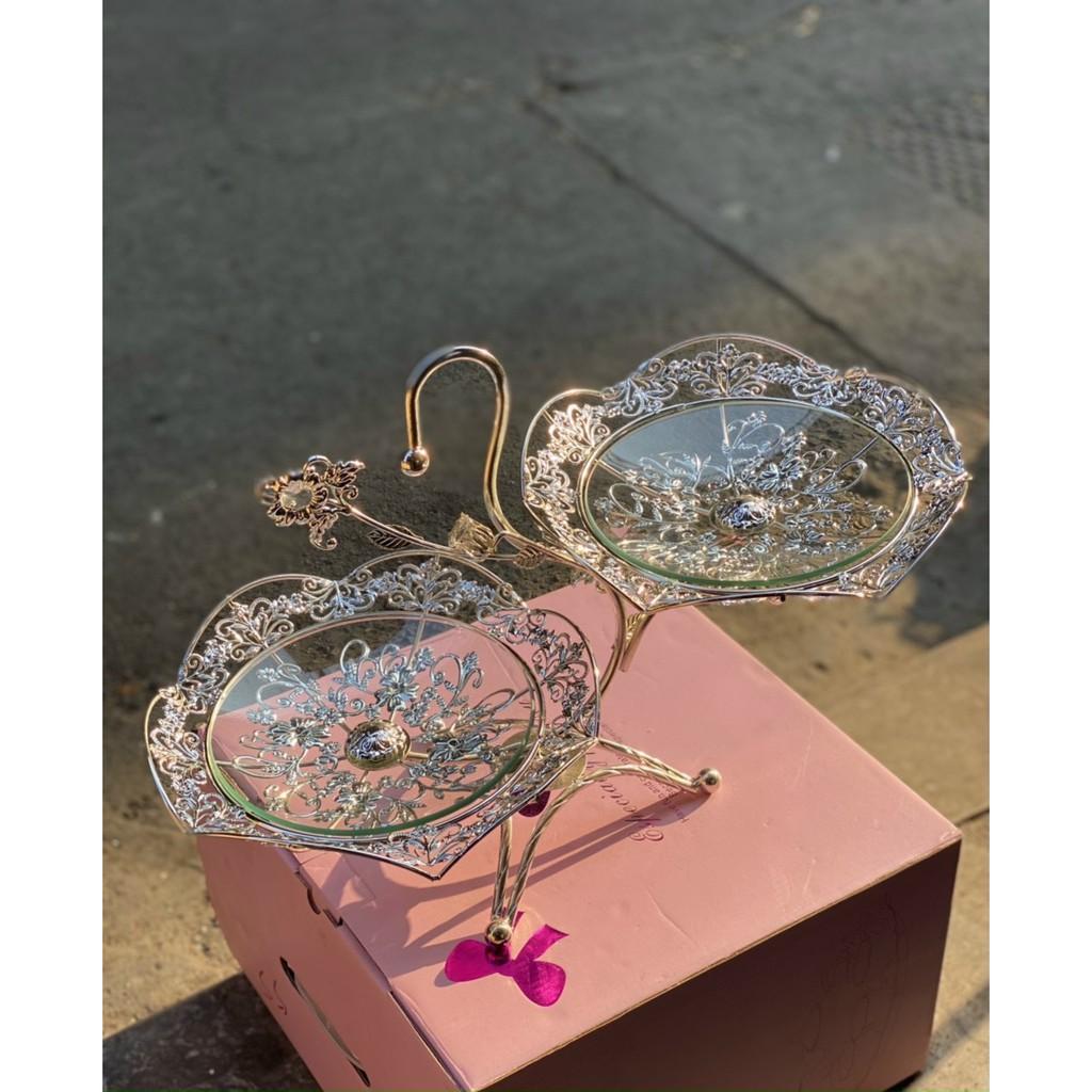 Mua tại TiktokĐĩa 2 - 3 tầng khảm đá Hoàng Gia Chất liệu: Hợp kim đồng mạ tĩnh điện không bay màu Sử dụng chất liệu kính Triplex Toàn bộ đính đá Swarovski