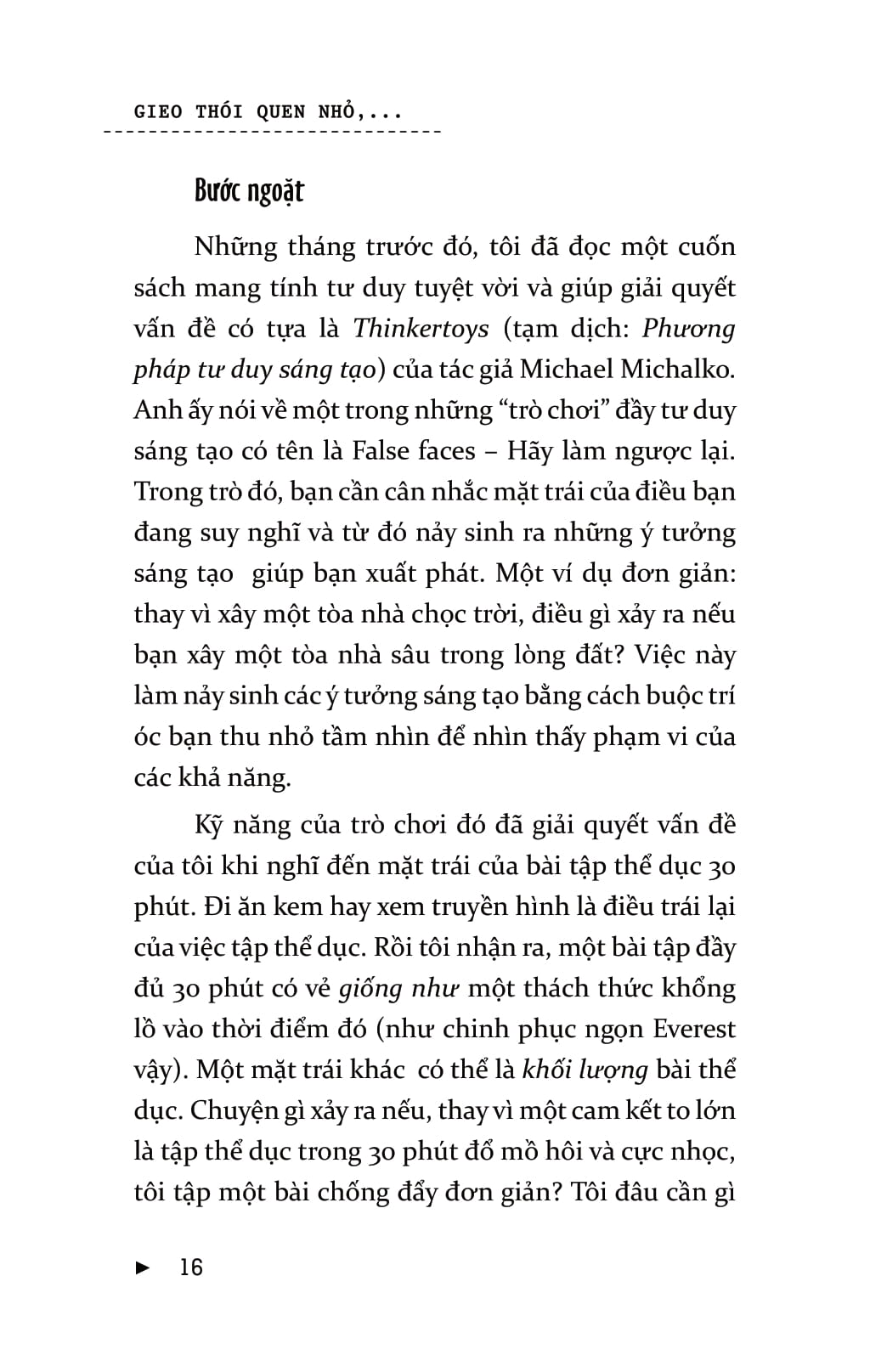 Thói Quen Làm Nên Sáng Tạo ------------ Thomas Edison từng nói: “Thiên tài chỉ có 1% là may mắn, 99% còn lại là mồ hôi và nước mắt.” Chẳng có ai sinh ra đã
