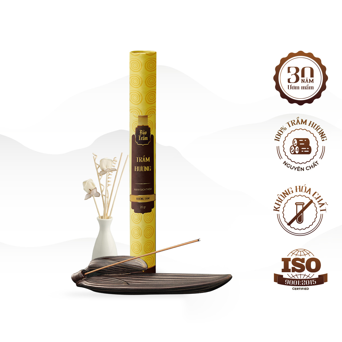 TRẦM THANH CAO CẤP – HỘP VÀNG – BẢO TRẦM | 20CM – 20G | TRẦM HƯƠNG NGUYÊN CHẤT – HƯƠNG THƠM TINH KHIẾT – KHÔNG PHỤ GIA Trầm Thanh Cao Cấp – Bảo Trầm là dòng sản phẩm trầm thanh đốt trực tiếp, được sản xuất từ bột trầm hương nguyên chất, kết dính bằng keo bời lời thiên nhiên, không chứa hóa chất độc hại. Thiết kế sang trọng, nhỏ gọn, phù hợp để thắp hương, thiền định, xông nhà hoặc làm quà tặng tâm linh.   Thông tin sản phẩm: Tên sản phẩm: Trầm Thanh Cao Cấp – Hộp Vàng   Thương hiệu: Bảo Trầm   Chiều dài que trầm: 20 cm   Khối lượng tịnh: 20g   Hình thức: Không chân (thanh tròn)   Thành phần: Bột trầm hương tự nhiên 100% + keo bời lời   Thời gian cháy: Khoảng 30–40 phút/thanh (tùy môi trường)   Công dụng nổi bật: Thư giãn tinh thần, giúp ngủ ngon, giảm căng thẳng   Xông phòng, khử uế, thanh lọc không gian sống   Phù hợp cho thiền, tụng kinh, yoga, phong thủy   Bao bì sang trọng – thích hợp làm quà tặng tâm linh cao cấp   Hướng dẫn sử dụng: Đốt một đầu thanh trầm bằng bật lửa hoặc nhang lửa   Đặt vào lư xông, khay xông, hoặc đĩa chống cháy   Để nơi thoáng, tránh gió mạnh để hương lan tỏa tốt   Cam kết từ Bảo Trầm: 100% trầm thật – sạch – không trộn   Sản phẩm chuẩn hương, đúng thời gian cháy   Đổi trả nếu sản phẩm lỗi, hư hỏng do vận chuyển