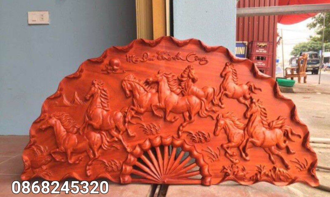 Mua tại TiktokTranh cánh quạt khắc tích mã đáo thành công được làm bằng chất chất liệu gỗ hương đỏ tự nhiên 100% Kt 50×100 dầy 4cm _ Tranh được khắc nổi tỉ mỉ ,tinh xảo kỳ công .Từ những người thợ giàu kinh nghiệm cũng như tay nghề cao trong làng nghề truyền thố