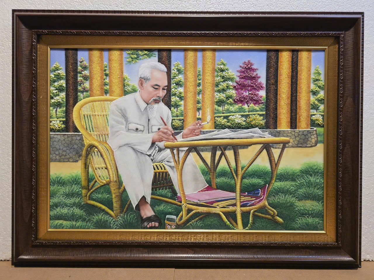 ✨Tranh đá tưn nhiên Bác Hồ ngồi viết di chúc -TD002