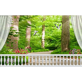 ✨Tranh dán tường cửa sổ rừng xanh CS93(120x170cm)