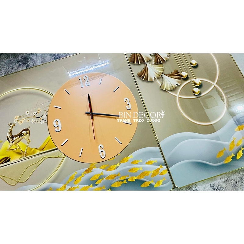 ✨Tranh đồng hồ tráng gương cách điệu hươu vàng tài lộc trang trí phòng khách, làm quà tân gia
