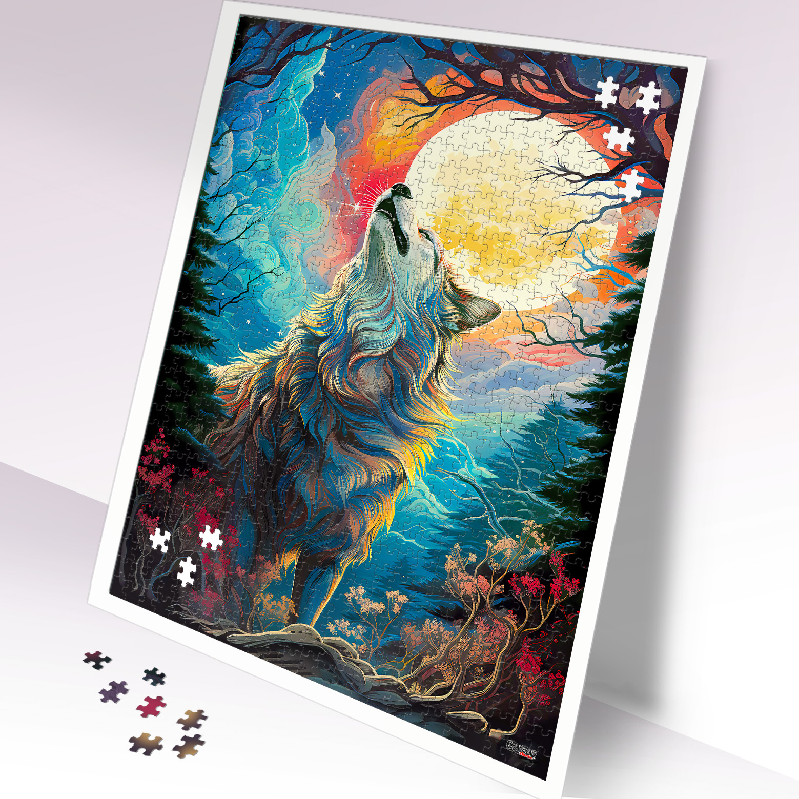 ✨Tranh ghép hình trong vài phút - Tranh xếp hình cao cấp tia sáng - Tranh ghép hình 925 mảnh -001- Sói hú trăng