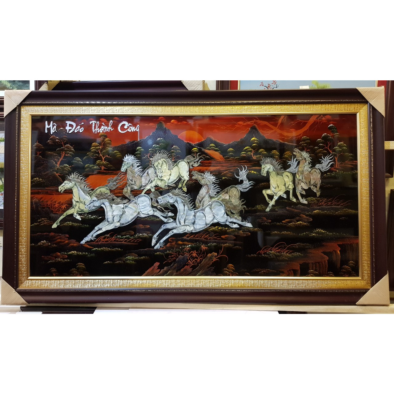 Tranh sơn mài khảm trai mã đáo thành công lành tít cao 49cm rộng 80cm rất đẹp giá 700k ai kết ib