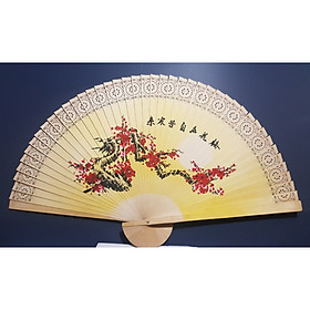 Quạt Tranh Treo Tường Nan Gỗ - Hoa Đào và Chim