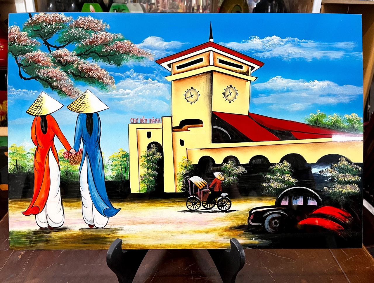 ✨Tranh sơn mài - CHỢ BẾN THÀNH VIỆT NAM / Biểu tượng văn hóa Sài Gòn – Quà tặng ý nghĩa