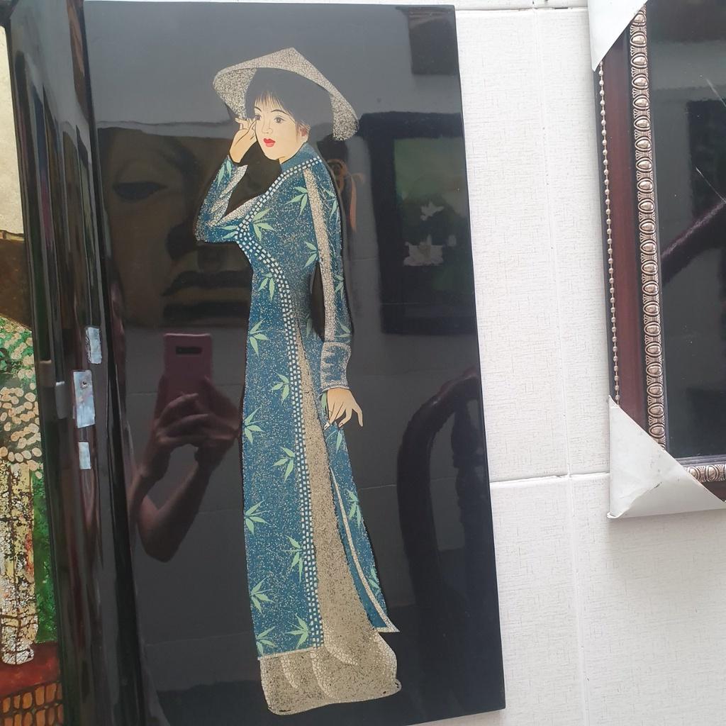 ✨Tranh sơn mài cô gái áo dài Việt Nam cẩn trứng hàng xuất khẩu 30x60 cm
