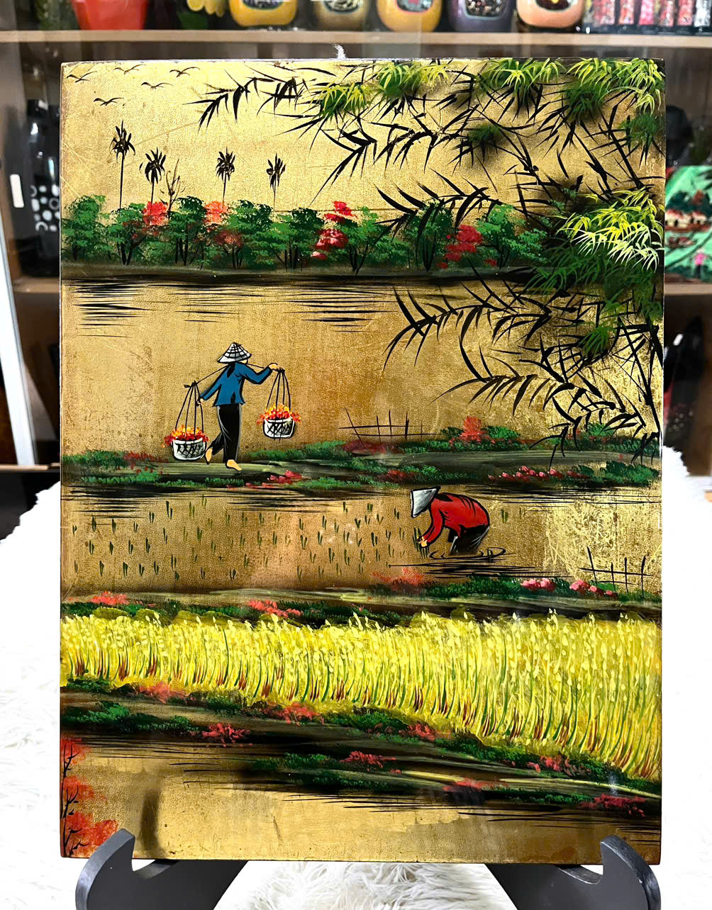 ✨Tranh sơn mài - ĐỒNG QUÊ VIỆT NAM - Nền dát vàng/ bạc, hàng xuất khẩu size 30x40 cm