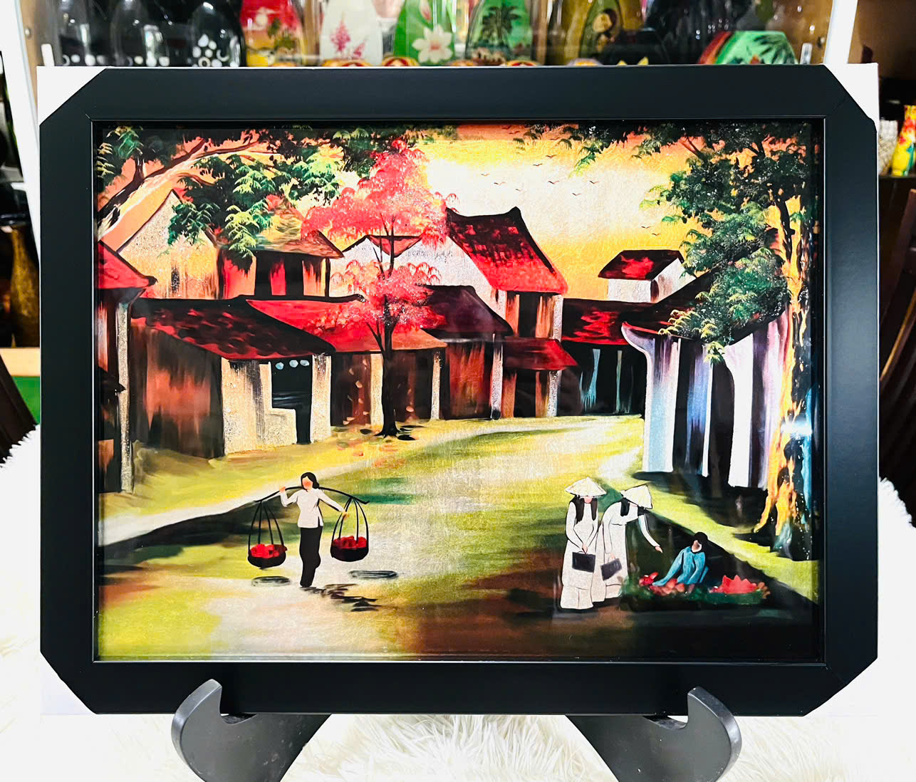 - LƯU Ý: Shop giao mẫu ngẫu nhiên, khách hàng muốn lựa chọn mẫu vui lòng nhắn tin riêng cho shop nhé ạ. Kích thước: 30x40cm Sản phẩm phù hợp để trang trí phòng khách, phòng làm việc; làm quà tặng tân gia, khai trương, doanh nghiệp, tri ân khách hàng. Ngày nay, việc kết hợp sơn mài cùng những nguyên liệu khác đã tạo nên sự đa dạng về chủng loại sản phẩm. Bên cạnh các sản phẩm sơn mài có phôi gỗ, hình thức sử dụng phôi gốm, phôi MDF (Cót ván ép)… đã tạo ra nhiều sản phẩm sơn mài độc đáo, dần khẳng định vị thế thương hiệu Sơn mài Việt Nam trên thị trường thủ công mỹ nghệ quốc tế. Hướng dẫn bảo quản: Tránh ánh nắng trực tiếp và nhiệt độ cực nóng. Giữ đồ Sơn Mài của bạn trong môi trường cân bằng (trung bình: 60% độ ẩm) Tranh được vẽ chi tiết tinh xảo, tỉ mỉ dưới bàn tay của các nghệ nhân thời gian hơn 60 ngày Tất cả tranh sơn mài được sử dụng màu vẽ, sơn PU với chất lượng tốt giúp tranh luôn giữ được màu vẽ, độ bóng bền vững theo thời gian. Đồng quê Việt Nam luôn là nguồn cảm hứng bất tận của những người nghệ sĩ yêu quê hương. Những cánh đồng lúa bạt ngàn, những con người lao động chân chất nhưng cần cù chịu thương chịu khó.... là những nét đẹp của đất nước trong mắt nhân dân và bạn bè quốc tế. Các bức tranh phong cảnh làng quê Việt Nam với những hình ảnh quen thuộc như gốc đa giếng nước, cậu bé chăn trâu thổi sáo,…Những hình ảnh của làng quê vừa mộc mạc, giản dị lại vừa thể hiện vẻ đẹp thơ mộng, yên bình của làng quê Việt Nam. Những hình ảnh từ tranh làng quê này gợi nhớ cho chúng ta nỗi nhớ nhung mam mác về sự yên bình không thể phai nhòa trong tâm thức mỗi người dân Việt. Xã hội ngày càng hiện đại, những hình ảnh quen thuộc của phong cảnh làng quê Việt Nam dần được thay thể bởi những khu công nghiệp với những nhà máy, máy móc hiện đại,…khiến bạn không được ngắm những hình ảnh đẹp của quê hương thân thương ngày xưa nữa. Chính vì thế, bằng những nét vẽ tinh tế, các họa sĩ đã sáng tạo nên những bức tranh phong cảnh làng quê Việt Nam để giúp bạn có thể lại được thấy những hình ảnh thân thuộc của tuổi thơ. Chuyên sản xuất hàng thủ công mỹ nghệ. Nhận gia công theo yêu cầu khách hàng.