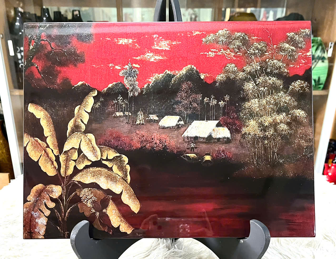 Tranh sơn mài cảnh đồng quê 30x40 cm-Làng nghề sơn mài Tương Bình Hiệp, sơn mài Thanh Bình Lê