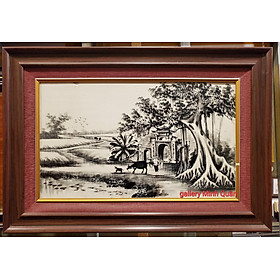 Tranh sứ vẽ cảnh đồng quê gốm sứ Bát Tràng - kích thước 100x 55cm đã bao gồm khung gỗ thông