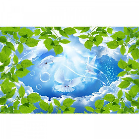 Tranh trần nhà 3D bầu trời lá xanh 6 TN54