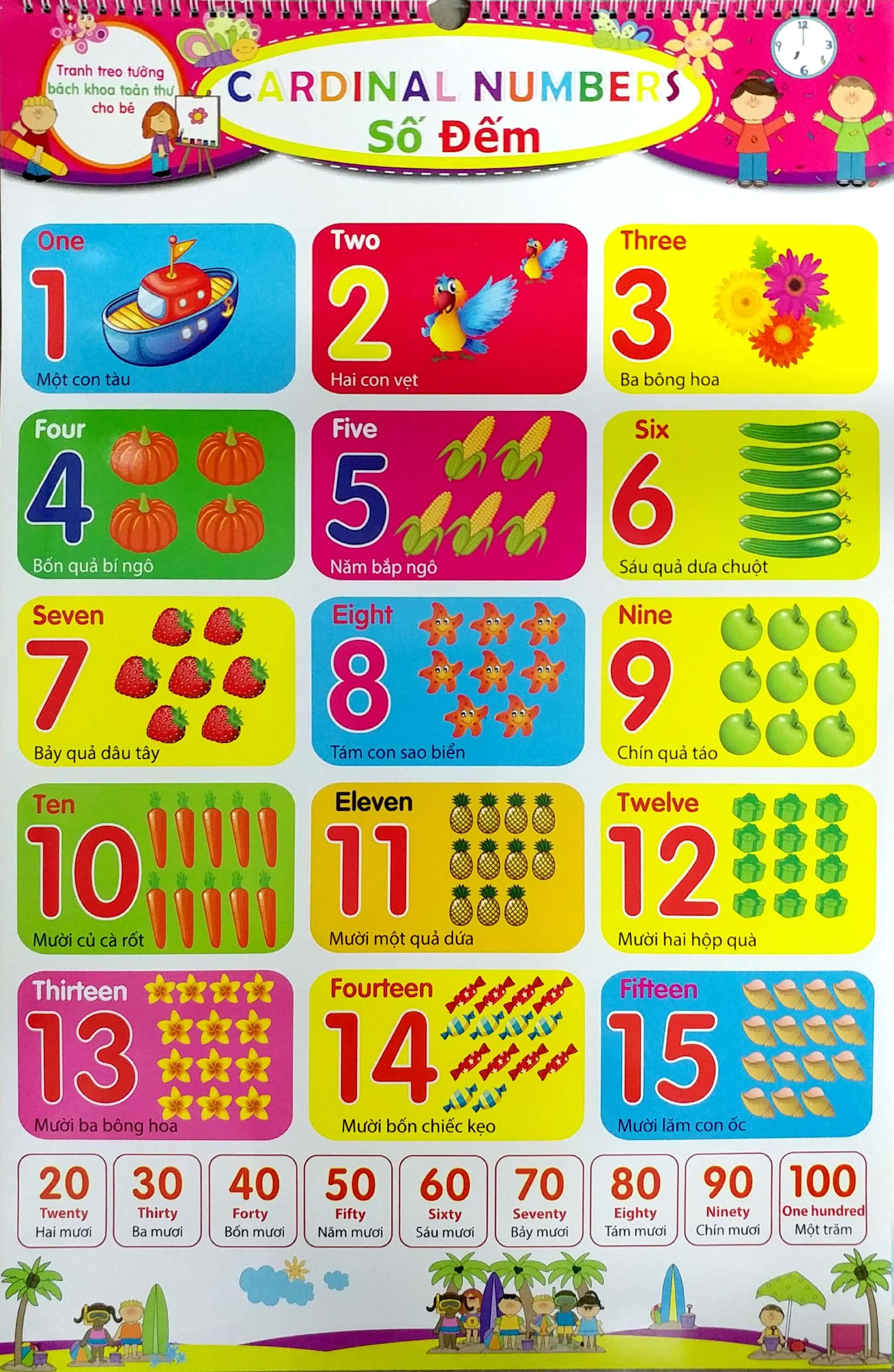 Bao gồm 10 chủ đề: Bảng chữ cái, bảng số đếm 1 - 100, rau củ, hoa quả, động vật nuôi, động vật hoang dã, hình khối - màu sắc, phép tính cộng, phép tính trừ. Được thiết kế dưới dạng hình ảnh minh họa sinh động, đa dạng, gắn kèm với nhiều hình ảnh thực tế gần gũi với môi trường xung quanh bé. Kích thích khả năng ham học của trẻ, khơi dậy tiềm năng tiếp cận với tiếng Anh và nhận biết được các con số, mặt chữ, đồ vật, dụng cụ, hình khối, màu sắc, hình ảnh quen thuộc… cuộc sống. Cuốn sách được thiết kế dưới dạng lịch treo tường với kích thước lớn rất tiện lợi cho trẻ có thể học tập và tiếp thu kiến thức được dễ dàng hơn. Sách phù hợp cho các bé học mầm non và học sinh lớp một.