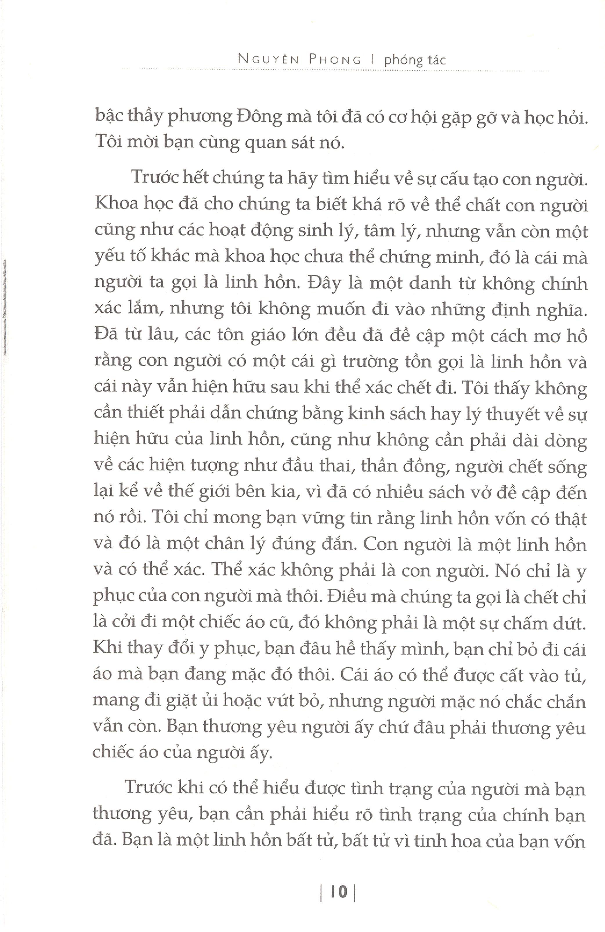 Đôi nét về tác giả Nguyên Phong: Tên thật là Vũ Văn Du, sinh năm 1950 tại Hà Nội. Năm 1968, ông rời khỏi Việt Nam, sang Hoa Kỳ du học hai nghành Sinh vật học và Điện toán, sau đó ông sống và làm việc tại Hoa Kỳ cho đến nay. Bên cạnh vai trò là một nhà khoa học, Nguyên Phong còn là dịch giả của hàng loạt sách về văn hóa và tâm linh phương Đông rất nổi tiếng. Trong số đó, có thể kể đến: Hành Trình Về Phương Đông, Ngọc Sáng Trong Hoa Sen, Bên Rặng Tuyết Sơn, Hoa Sen Trên Tuyết, Hoa Trôi Trên Sóng Nước, Trở Về Từ Xứ Tuyết, Minh Triết Trong Đời Sống Ăn Uống, Đường Mây Qua Xứ Tuyết…