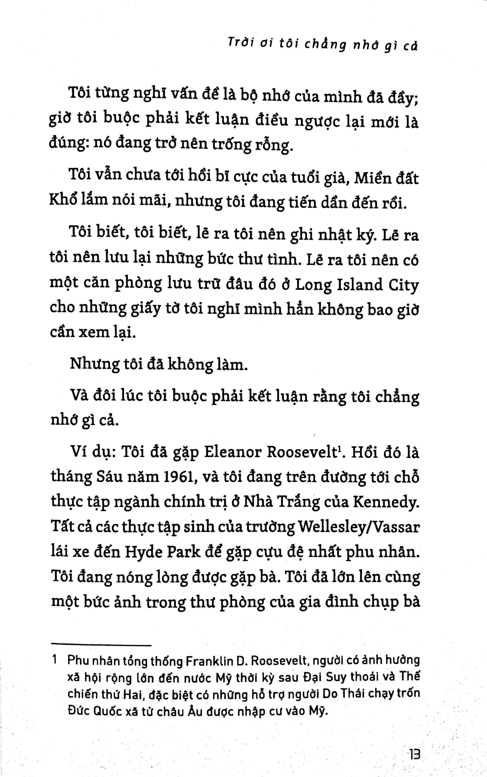 Cái nhìn dí dỏm về đời sống trong quá khứ, hiện tại và tương lai, gợi nhắc về những gì đã qua bằng sự mẫn tiệp, mạch lạc trong suy nghĩ. Những thấu đáo và quan sát thoạt nghe đã thấy có lý, chỉ có thể là Nora Ephron .