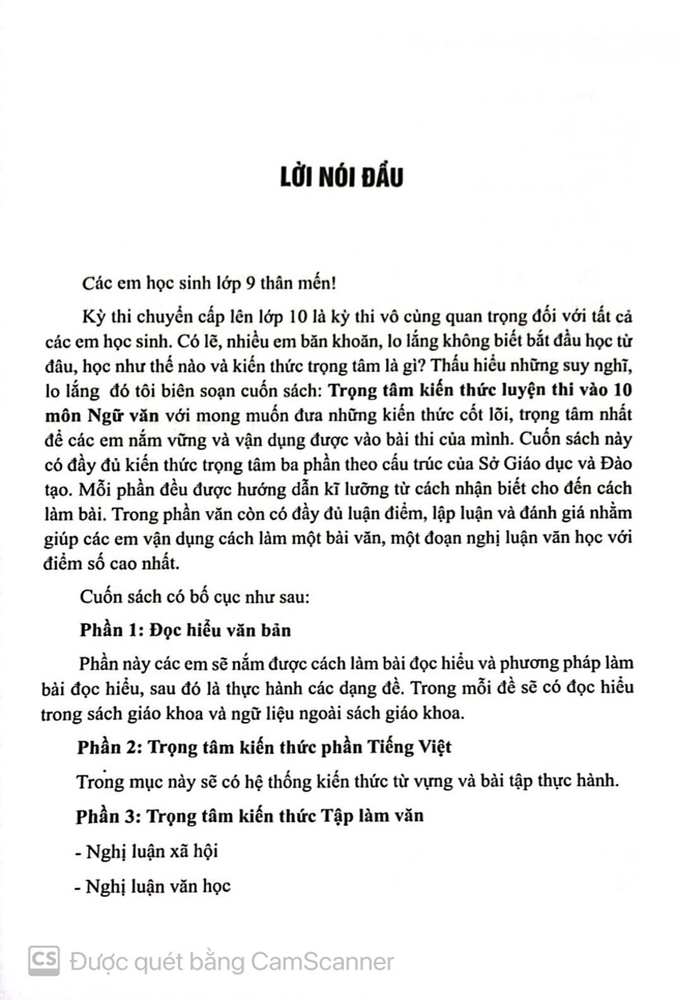 "Trọng tâm kiến thức luyện thi vào 10 môn Ngữ văn" Với mong muốn đưa những kiến thức cốt lõi, trọng tâm nhất để các em nắm vững và vận dụng được vào bài thi của mình. Cuốn sách có đầy đủ kiến thức trong tâm ba phần theo cấu trú Mỗi phần đều được hướng dẫn kĩ lưỡng từ cách nhận biết cho đến các làm bài. Trong phần văn còn có đầy đủ luận điểm, lập luận và đánh giá nhằm giúp các em vận dụng cách làm một bài văn, một đoạn nghị luận văn học với điểm số cao nhất