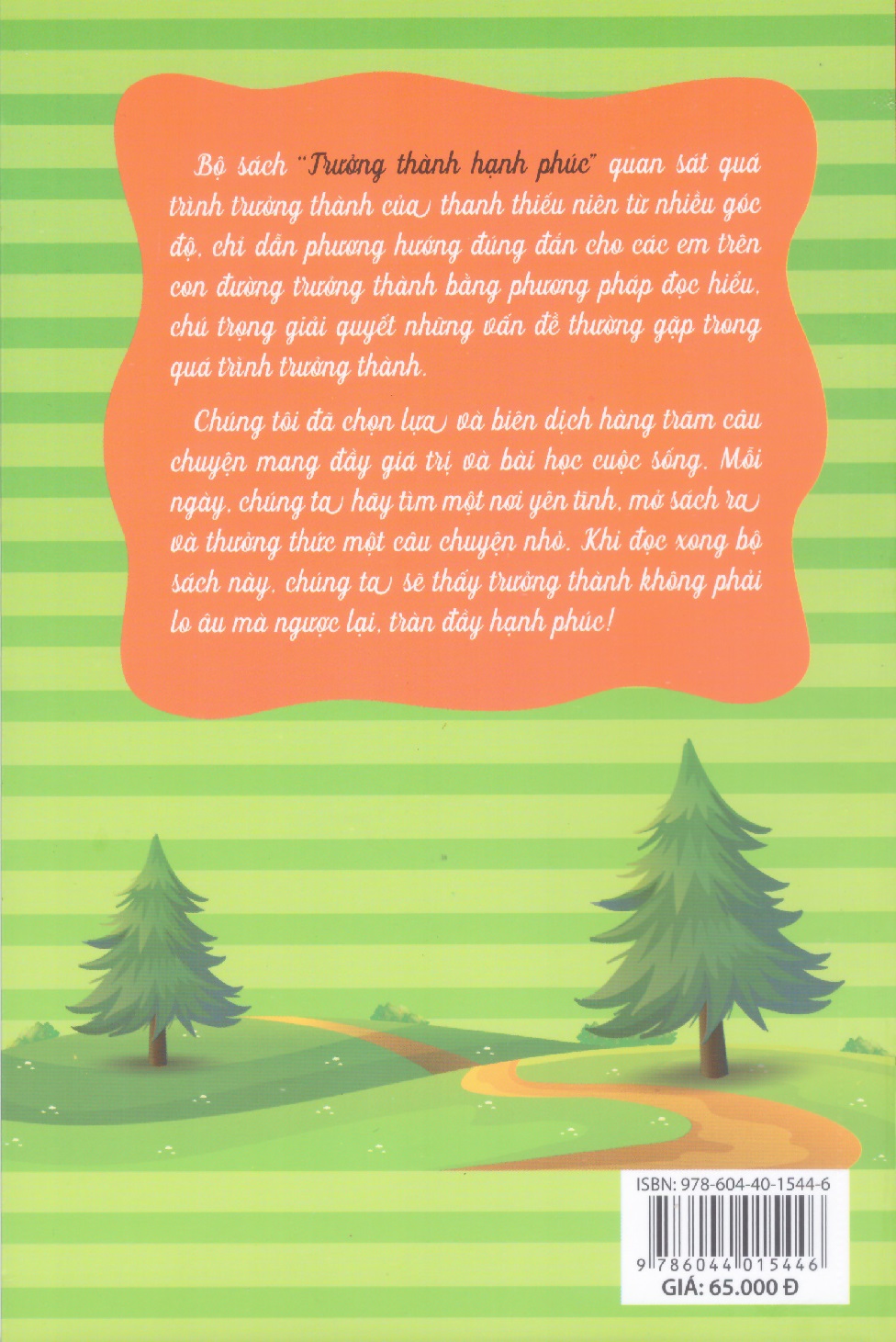 Nội dung: Bộ sách “Trưởng thành hạnh phúc” quan sát quá trình trưởng thành của thanh thiếu niên từ nhiều góc độ, chỉ dẫn phương hướng đúng đắn cho các em trên con đường trưởng thành bằng phương pháp đọc hiểu, chú trọng giải quyết những vấn đề thường gặp trong quá trình trưởng thành. Nhóm tác giả đã chọn lựa và biên dịch từ hàng trăm câu chuyện mang đầy giá trị và bài học cuộc sống. Mỗi ngày, chúng ta hãy tìm một nơi yên tĩnh, mở sách ra và thưởng thức một câu chuyện nhỏ. Khi đọc xong bộ sách này, chúng ta sẽ thấy trưởng thành không phải lo âu mà ngược lại, tràn đầy hạnh phúc.