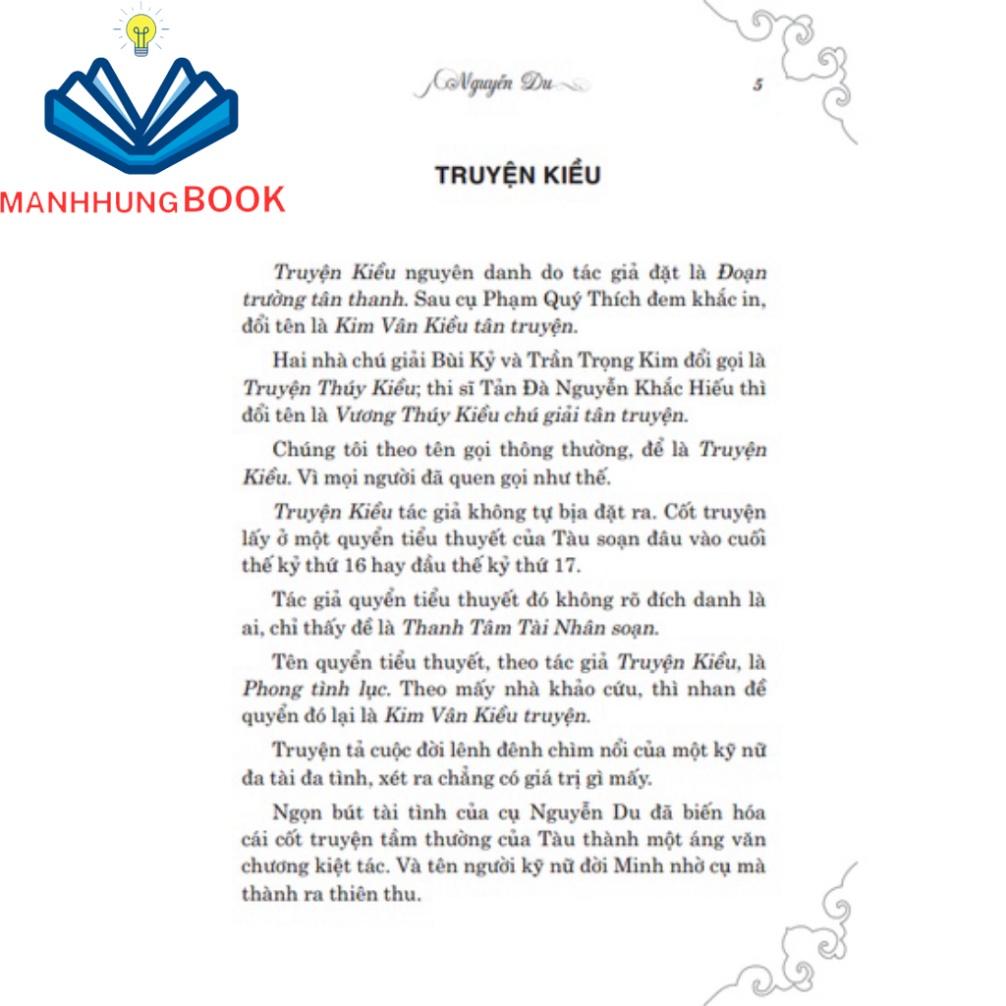 Nguyễn Du sinh năm Ất Dậu, niên hiệu Cảnh Hưng thứ 26 đời Lê (1765), thông minh từ thủa nhỏ, năm 19 tuổi đã đỗ tam trường (cũng như cử nhân) Truyện Kiều nguyên danh do tác giả đặt là Đoạn trường tân thanh. Sau cụ Phạm Quý Thích đem khắc in, đổi tên là Kim Vân Kiều tân truyện.