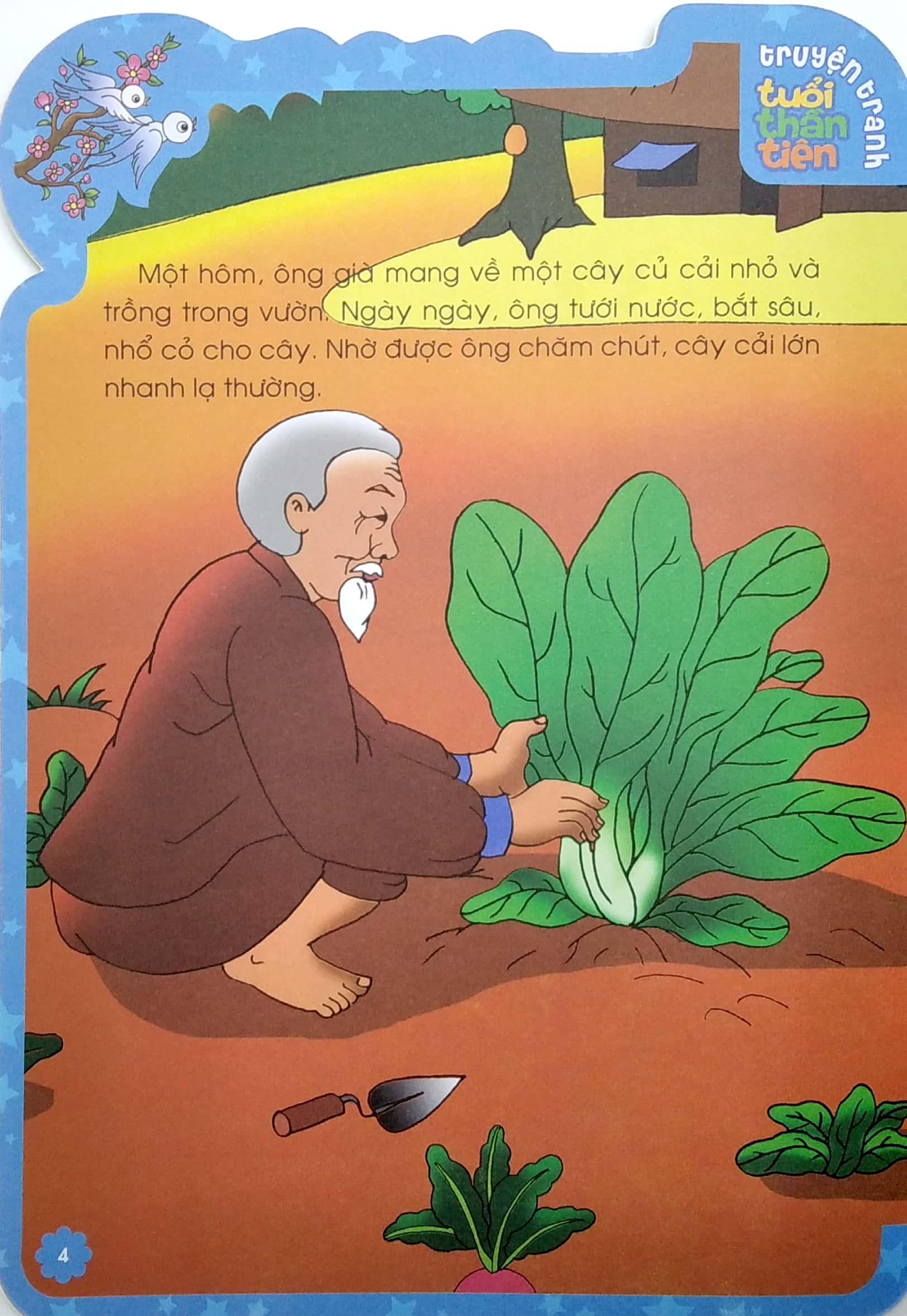 Một hôm, ông già mang về một cây củ cải nhỏ và trồng trong vườn. Ngày ngày, ông tưới nước, bắt sâu, nhổ cỏ cho cây. Nhờ ông chăm chút, cây cải lớn nhanh lạ thường.