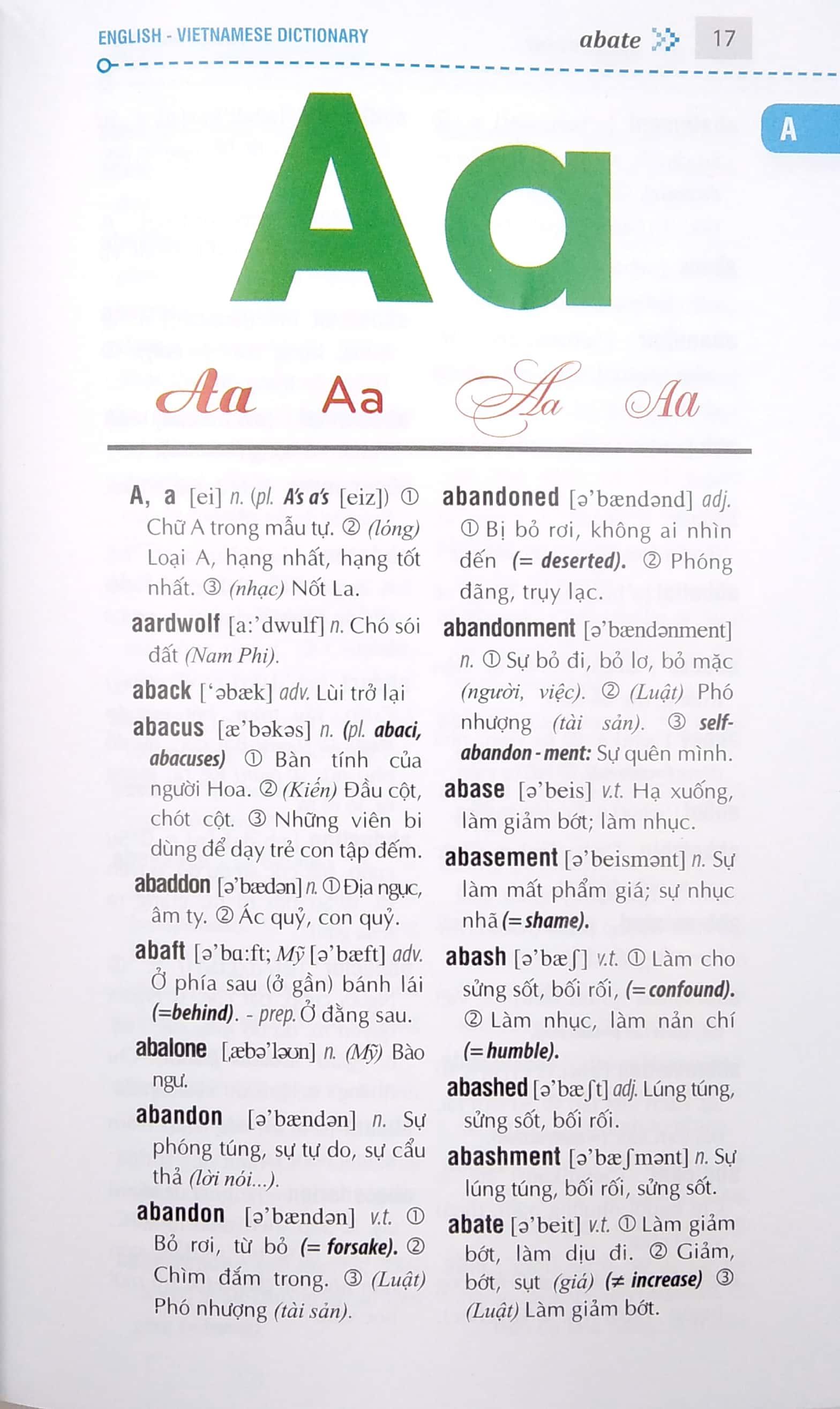 Nhằm đáp ứng nhu cầu học tiếng anh đa dạng của độc giả , chúng tôi đã biên soạn bộ từ điển Anh - Việt để phục vụ cho người học tiếng anh thuộc mọi