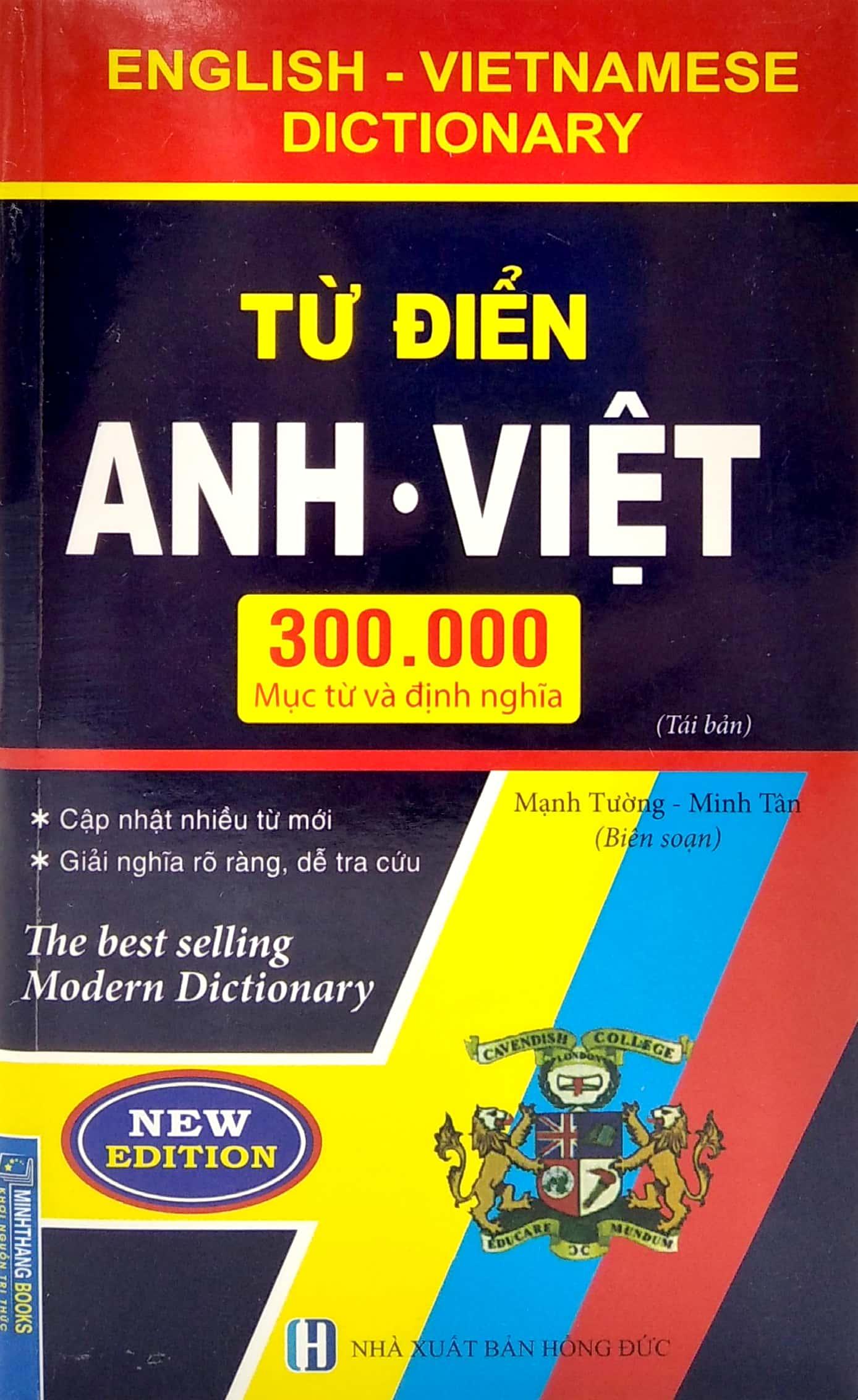 Từ điển Anh - Việt trên 135.000 từ (bìa cứng) - tái bản 04 Nhằm đáp ứng nhu cầu học tiếng Anh đa dạng của nhiều người. Nhóm chúng tôi đã biên soạn cuốn từ