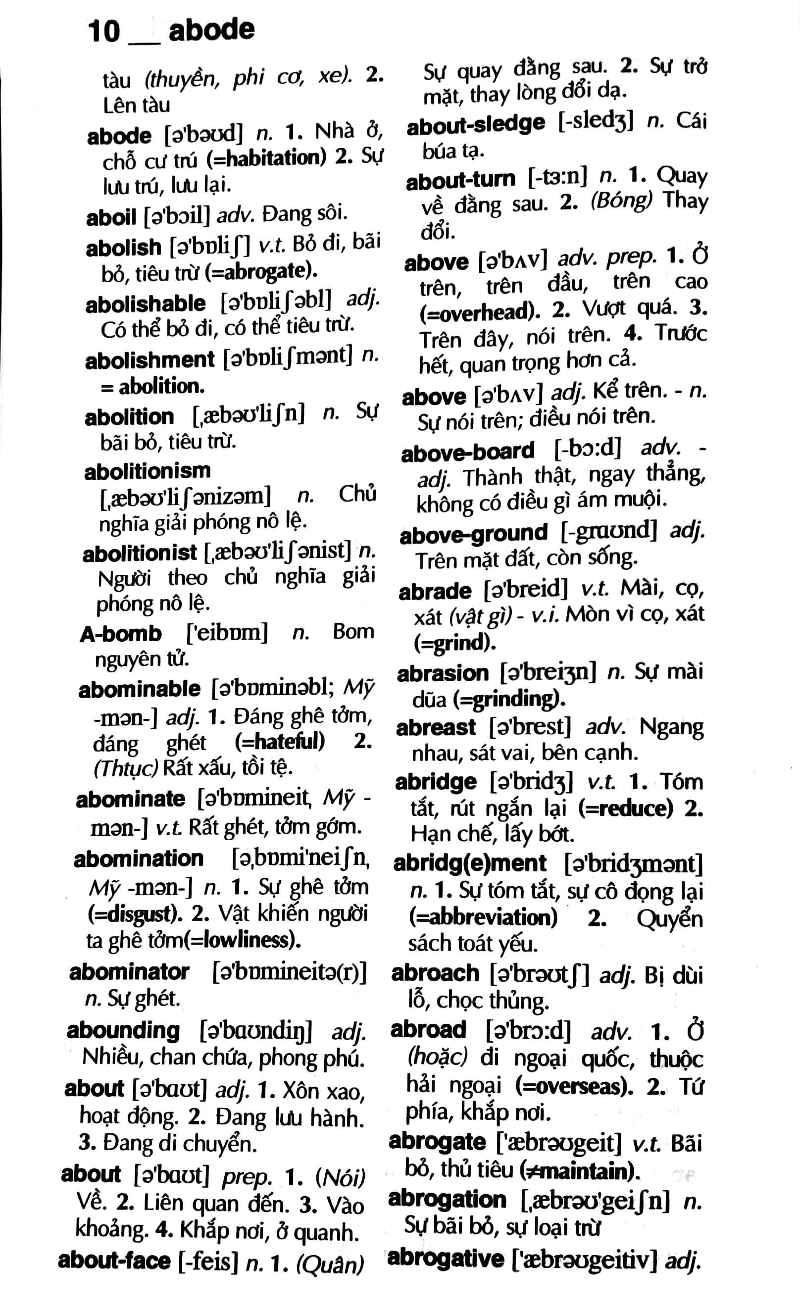 Nhằm đáp ứng nhu cầu học tiếng anh đa dạng của độc giả , chúng tôi đã biên soạn bộ từ điển Anh - Việt để phục vụ cho người học tiếng anh thuộc mọi