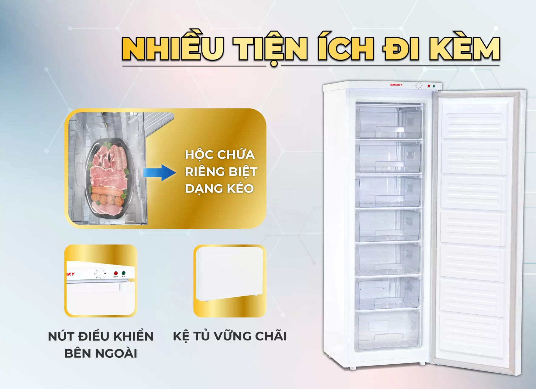 Hình ảnh tủ đông Sanaky VH-1199HY4K Các tính năng nổi bật của tủ đông Inverter Sanaky VH-1199HY4K Với một siêu phẩm tủ đông như VH-1199HY4K, việc liệt kê hết các tính năng, ưu điểm