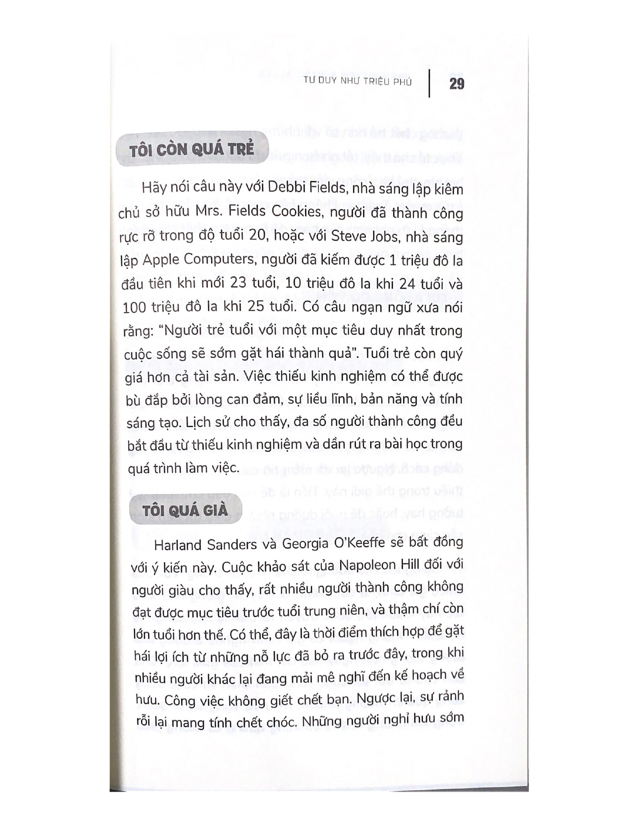 Đọc Tư duy như triệu phú, bạn sẽ học được cách loại bỏ những niềm tin tiêu cực, thay vào đó là tư duy tích cực. Bạn cũng sẽ khám phá các yếu tố khác của tư duy triệu phú, gồm lý do tại sao đưa ra quyết định nhanh dựa vào trực giác lại tốt hơn và cách thực hiện hiệu quả từng bước chiến lược để hướng tới mục tiêu đã đề ra.