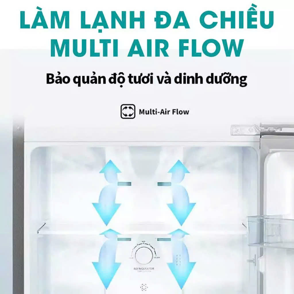 - Dung tích sử dụng 266 lít phù hợp gia đình 2 - 3 thành viên. - Luồng khí lạnh đa chiều Multi Air Flow làm lạnh đồng đều, giữ thực phẩm luôn tươi ngon. - LINEARCooling ổn