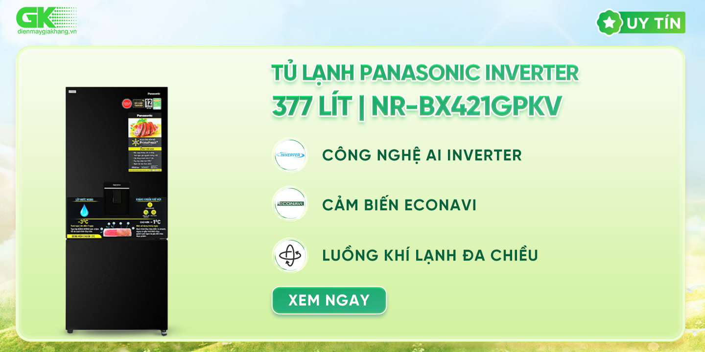 Chiếc tủ lạnh Panasonic sở hữu dung tích ngăn đá 112 lít và ngăn lạnh 265 lít , đáp ứng cho nhu cầu lưu trữ thực phẩm của những hộ gia đình có khoảng từ 3 - 4 thành viên.