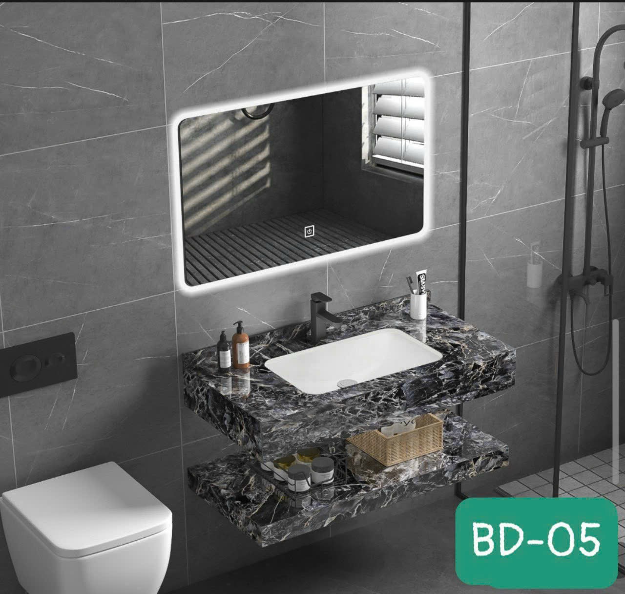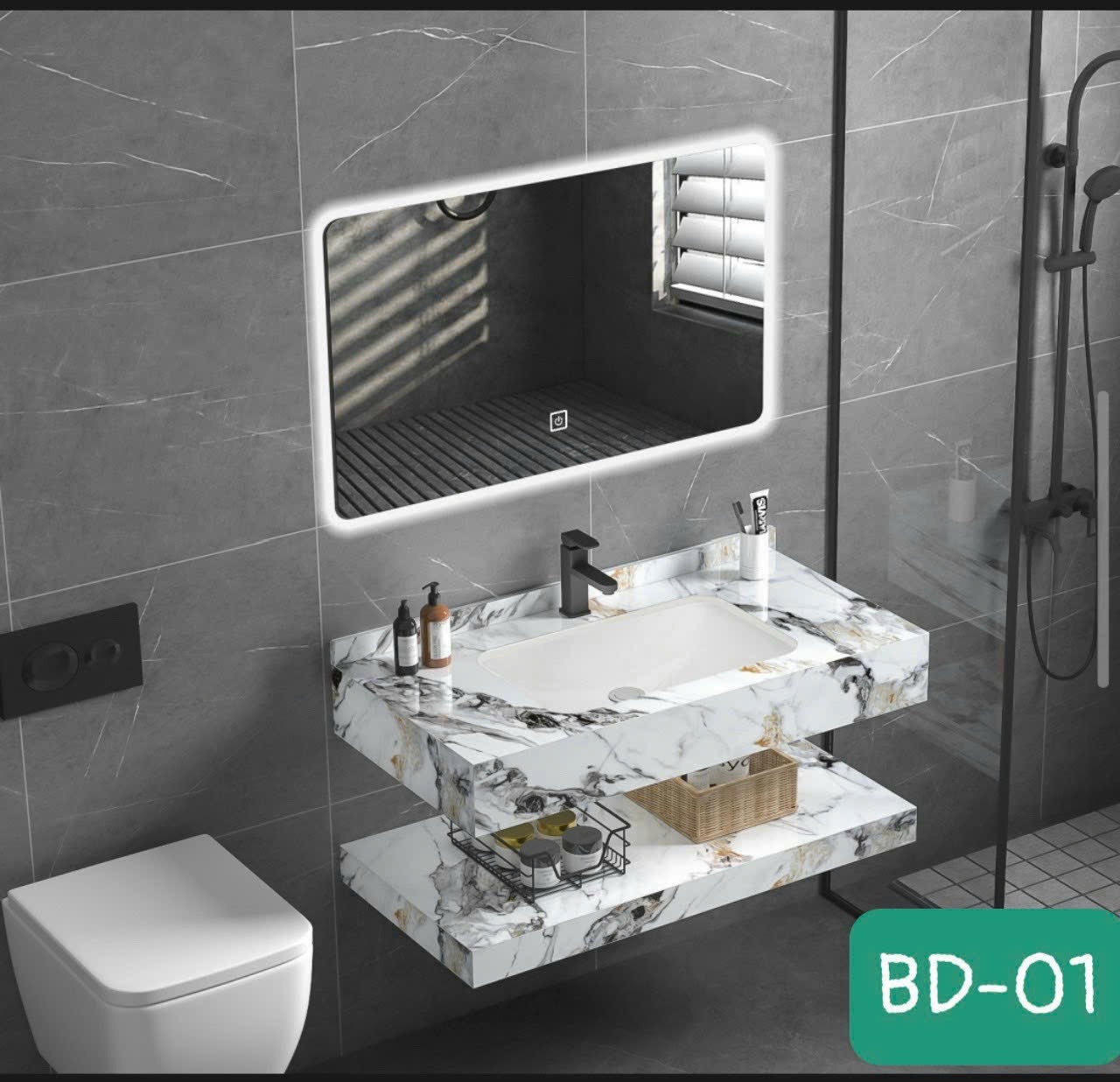 Siêu phẩm bàn đá lavabo kết hợp tủ gương led đáng từng đồng #gobe #phongtamcaocap #tuchaucaocap
