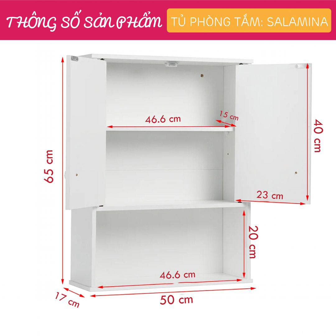 Mua tại TiktokTủ phòng tắm gỗ SMLIFE Salamina là giải pháp hoàn hảo cho những phòng tắm nhỏ, chung cư. Tủ phòng tắm SMLIFE được thiết kế nhỏ gọn, tinh tế với nhiều kệ và hộc ngăn kéo giúp mang đến cho người sử dụng nhiều không gian lưu trữ các vật dụng, thiết bị nhà tắm … Sản phẩm hiện đang được bán với mức giá vô cùng phải chăng, có tính cạnh tranh cao. ĐẶC ĐIỂM SẢN PHẨM: